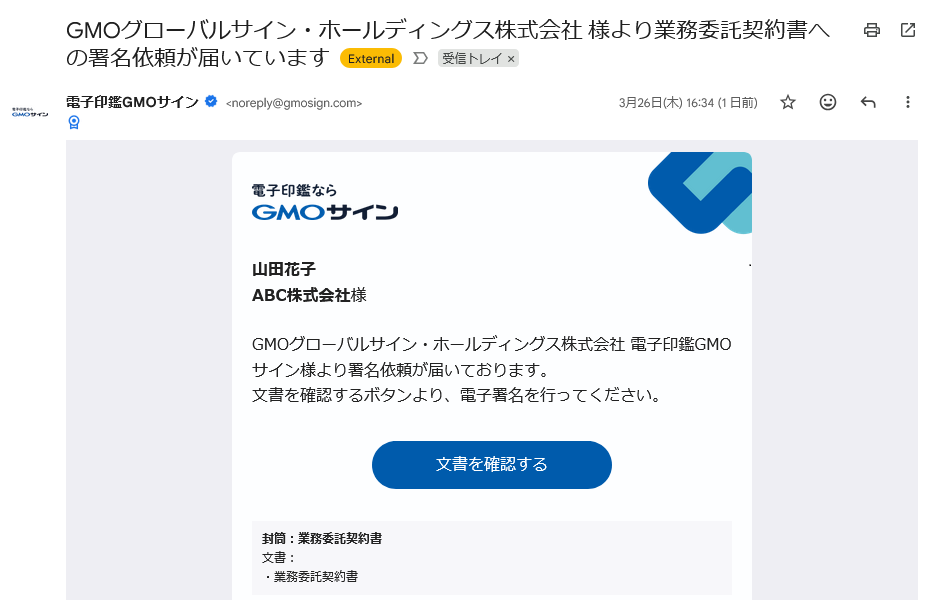 - 保管先契約書フォルダ:指定したGMOサインのフォルダに文書が保管されます。